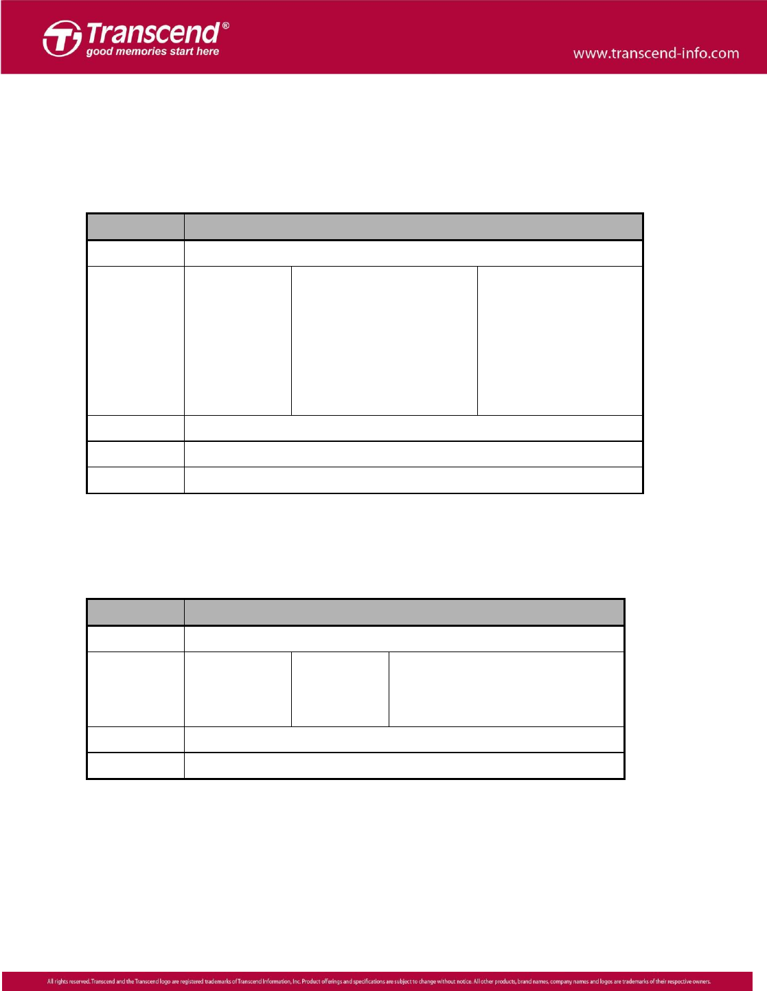the information defined in the following table.